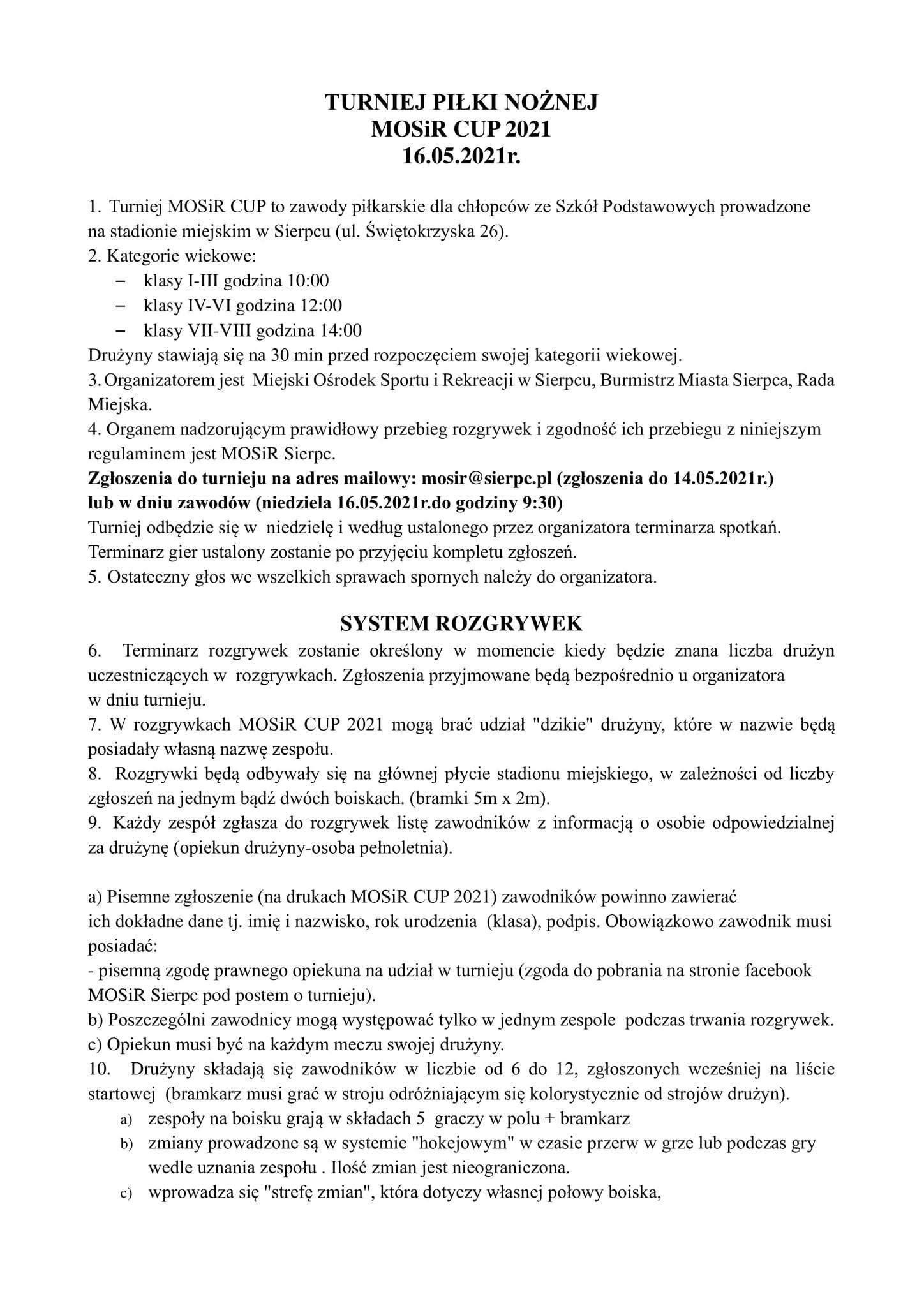 Zapisy do 14.05.2021 mail: mosir@sierpc.pl